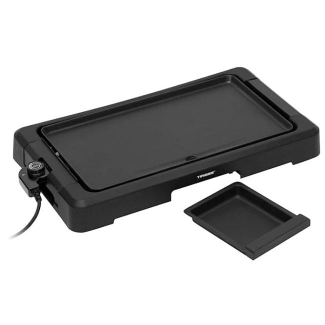 _ Điểm đặc trưng của TS969 là tấm nướng lớn, được thiết kế thông minh với hai khu vực chức năng: một phần có các rãnh để nướng thịt, giúp loại bỏ mỡ thừa và tạo vân nướng đẹp mắt; và một phần phẳng lý tưởng để nướng các loại rau củ, trứng hoặc hải sản. Bề mặt nướng được phủ lớp chống dính cao cấp, giúp thực phẩm không bị bám dính, dễ dàng lật trở và lấy ra mà không làm hỏng món ăn. Đặc biệt, tấm nướng có thể tháo rời hoàn toàn, cho phép bạn rửa sạch dưới vòi nước hoặc bằng máy rửa chén một cách dễ dàng và kỹ lưỡng, đảm bảo vệ sinh tối đa.