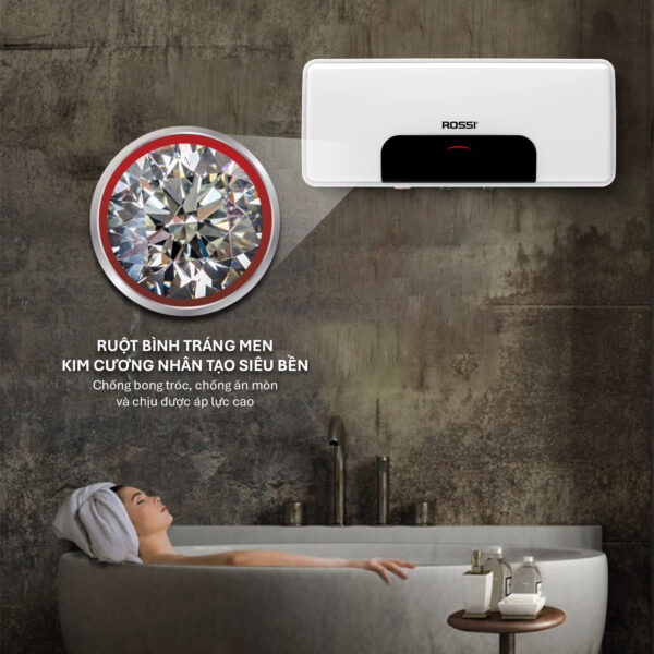 - Ruột bình tráng men kim cương nhân tạo siêu bền: Chống bong tróc, chống ăn mòn và chịu được áp lực cao