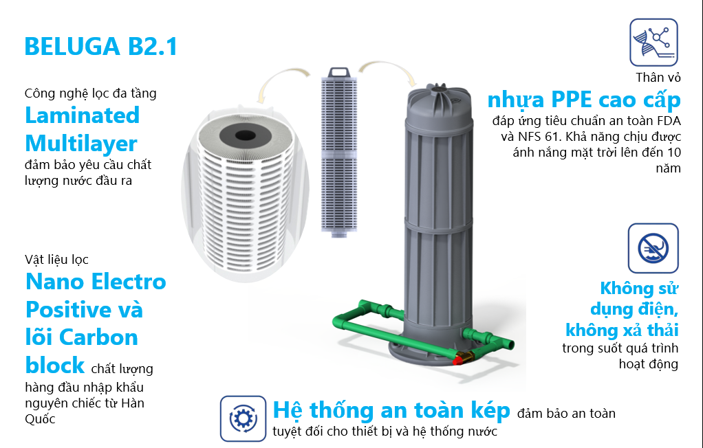 Bộ lọc đầu nguồn Tân Á Đại Thành Beluga B2.1 là lựa chọn tối ưu để cung cấp nguồn nước sạch, trong lành cho cả gia đình. Với thiết kế hiện đại và tích hợp công nghệ lọc tiên tiến, bộ lọc Beluga B2.1 giúp loại bỏ cặn bẩn, kim loại nặng, tạp chất, mang đến nguồn nước an toàn ngay từ đầu nguồn.