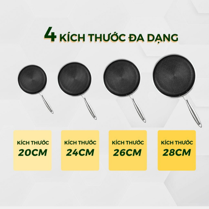 - Chảo đáy từ chống dính Dreamer có 4 kích thước đa dạng: