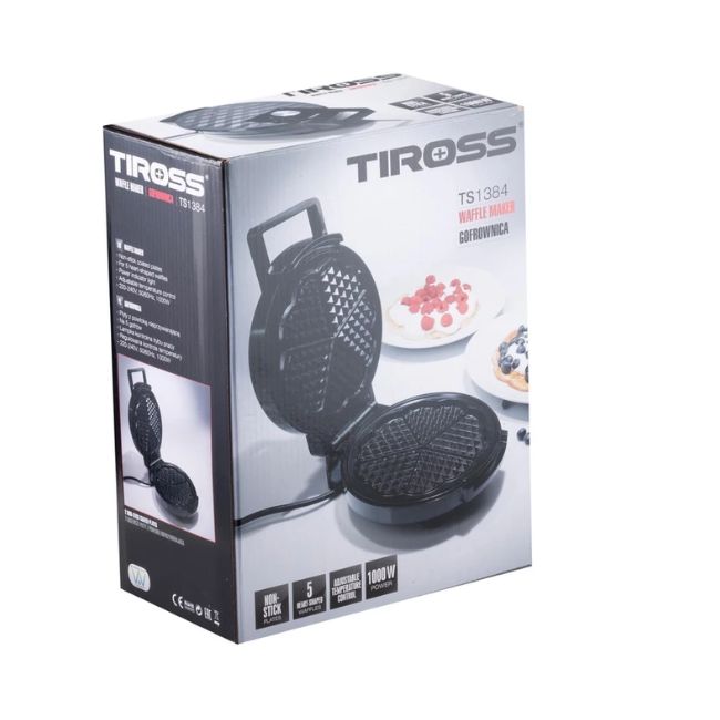 _ Kẹp nướng điện Waffle TIROSS 1000W - TS1384 là một thiết bị chuyên dụng được thiết kế để bạn có thể tự tay làm ra những chiếc bánh waffle thơm lừng, hấp dẫn ngay tại nhà một cách dễ dàng. Với công suất 1000W, máy làm nóng nhanh chóng và đảm bảo nhiệt độ ổn định trong suốt quá trình nướng, giúp bánh waffle đạt được độ giòn vàng bên ngoài và vẫn mềm xốp, bông nhẹ bên trong, mang đến hương vị chuẩn mực của món bánh này.