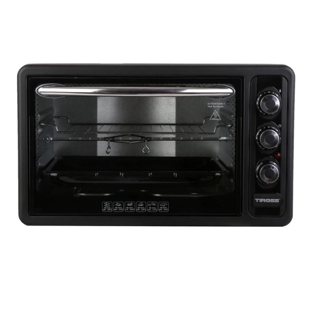 Cửa lò được làm từ kính cường lực hai lớp trong suốt, không chỉ giúp giữ nhiệt hiệu quả mà còn cho phép bạn dễ dàng quan sát toàn bộ quá trình nướng bên trong mà không cần mở cửa, tránh làm thất thoát nhiệt. Đèn chiếu sáng bên trong lò cũng là một điểm cộng giúp việc theo dõi trở nên thuận tiện hơn. Lò đi kèm đầy đủ các phụ kiện cần thiết như khay nướng chống dính, vỉ nướng, tay cầm khay và bộ xiên quay, sẵn sàng cho mọi nhu cầu nấu nướng của bạn. Với thiết kế hiện đại và tông màu trung tính, TIROSS TS9602 sẽ là một điểm nhấn sang trọng cho căn bếp của bạn.