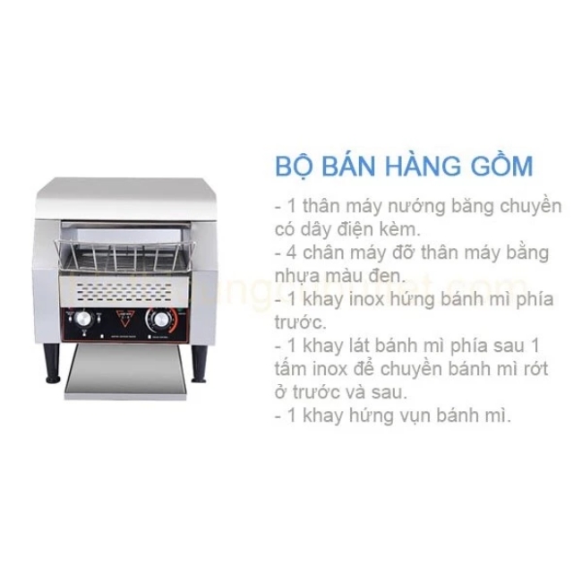 _ Với công suất 1300W mạnh mẽ và hoạt động ở điện áp 220V, lò có khả năng làm nóng nhanh chóng và duy trì nhiệt độ ổn định, đảm bảo mỗi lát bánh mì đều được nướng chín vàng đều và đạt độ giòn mong muốn. Bánh mì được đặt lên băng chuyền ở một đầu, sau đó từ từ di chuyển qua các thanh nhiệt độ cao bên trong, và tự động được đẩy ra ở đầu còn lại sau khi hoàn tất quá trình nướng. Điều này giúp tối ưu hóa quy trình làm việc và phục vụ nhanh chóng trong những giờ cao điểm.