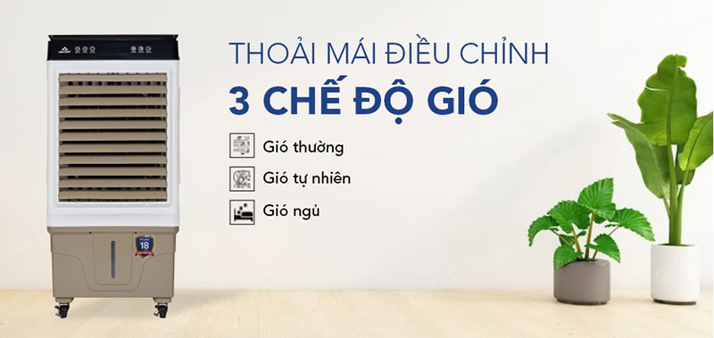 Máy được tích hợp 3 tốc độ gió: thấp – trung bình – cao, phù hợp với nhiều thời điểm trong ngày và nhu cầu làm mát khác nhau.