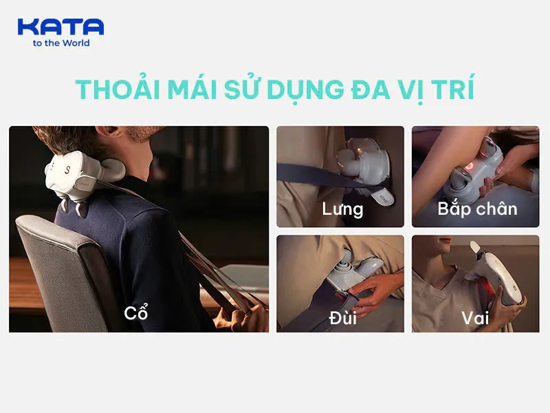 Không chỉ sử dụng cho cổ, bạn có thể sử dụng máy massage SKG H7 cho nhiều vị trí khác nhau như bắp chân, đùi, cánh tay,... Chỉ cần đặt máy đến vùng bản thân massage, bạn đã có thể tận hưởng cảm giác thư thái không thua kém các spa đấm bóp chuyên nghiệp.