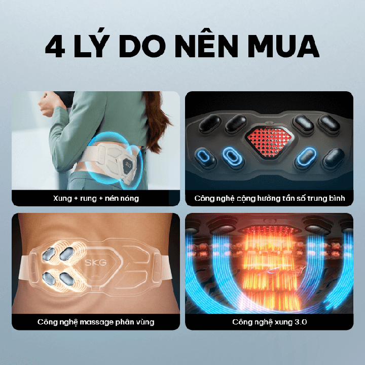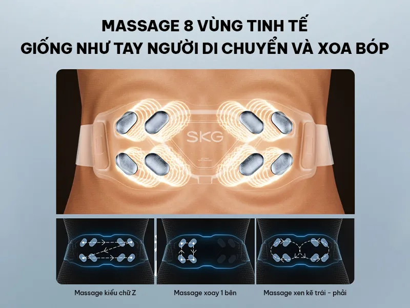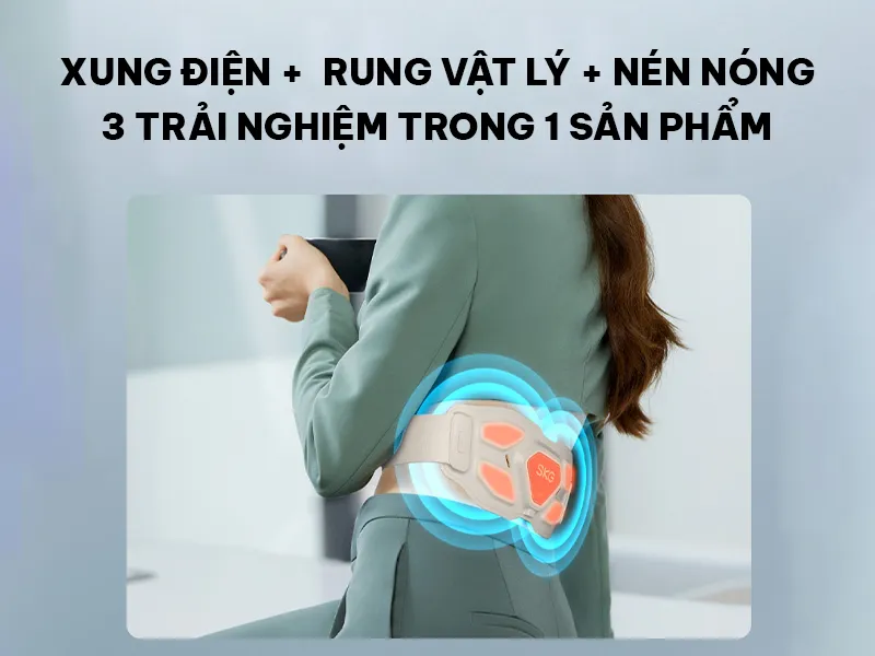 - Sử dụng kết hợp 3 trong 1: massage rung + xung điện + nén nóng.