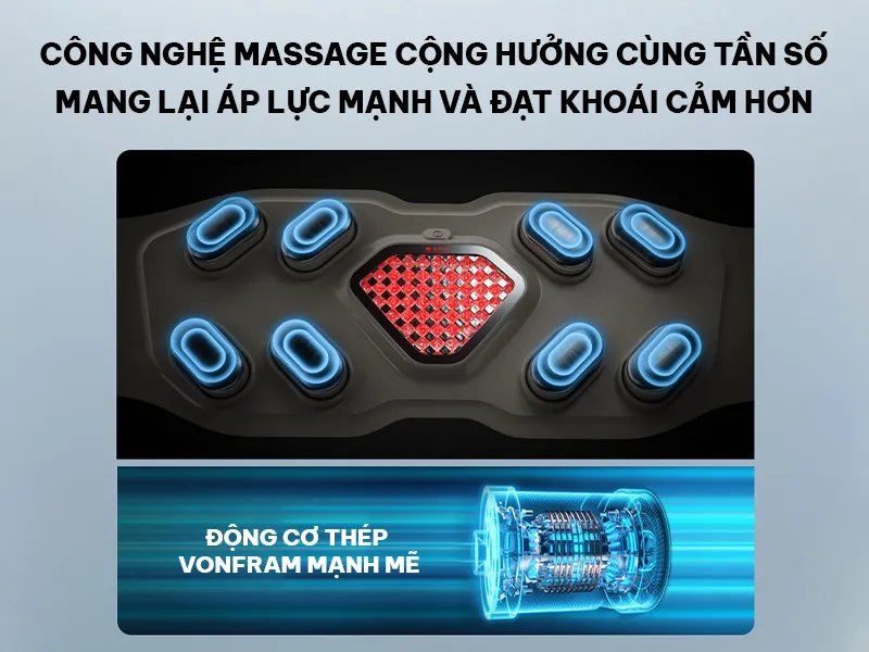 - Cải tiến 8 đầu massage vật lý cho phép diện tích massage tăng tới 14400mm2 .
