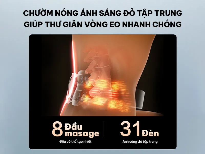 - 31 hạt ánh sáng đỏ 630nm + 3 mức nhiệt 38℃, 40℃, 42℃ làm ấm nhanh chóng.