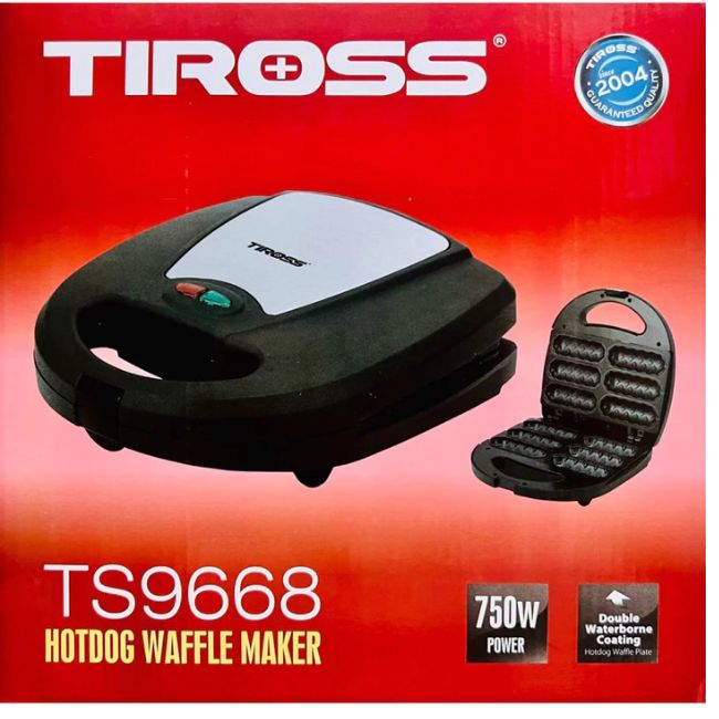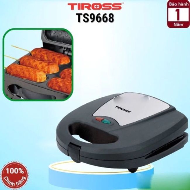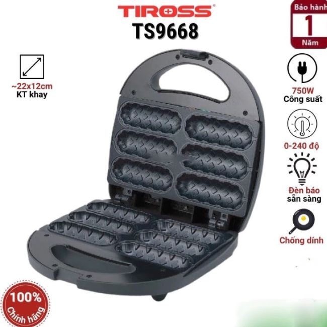 _ Máy nướng bánh hình xúc xích TIROSS - TS9668 là một thiết bị gia dụng độc đáo và tiện lợi, giúp bạn dễ dàng tự tay tạo ra những chiếc bánh nhỏ xinh xắn có hình dáng giống xúc xích hoặc hotdog ngay tại nhà. Đây là sản phẩm chuyên dụng để làm các loại bánh ngọt hoặc bánh mặn có hình que, không phải để nướng thịt xúc xích. Với công suất khoảng 750W, máy làm nóng nhanh chóng và duy trì nhiệt độ ổn định, đảm bảo các mẻ bánh được nướng chín đều và thơm ngon.