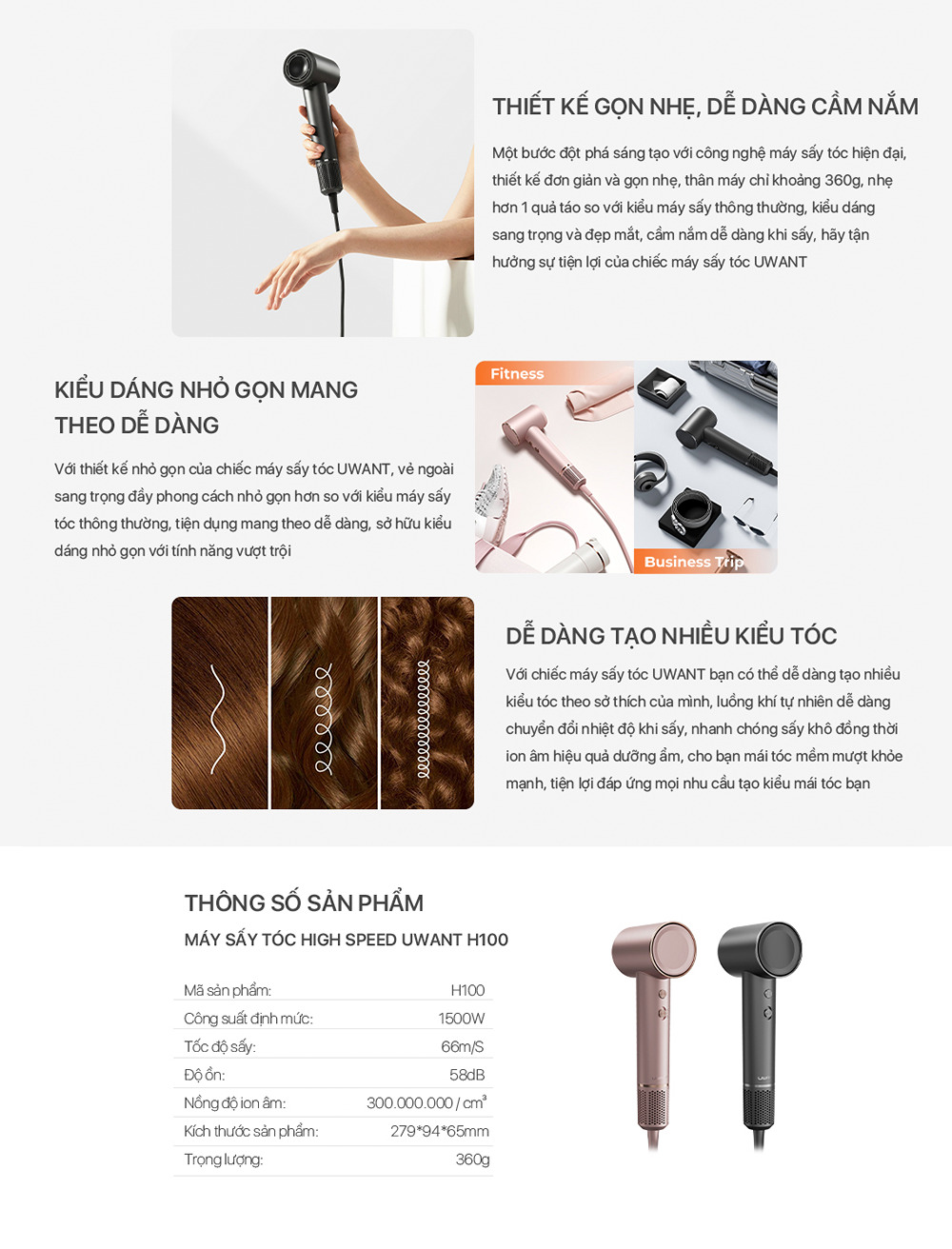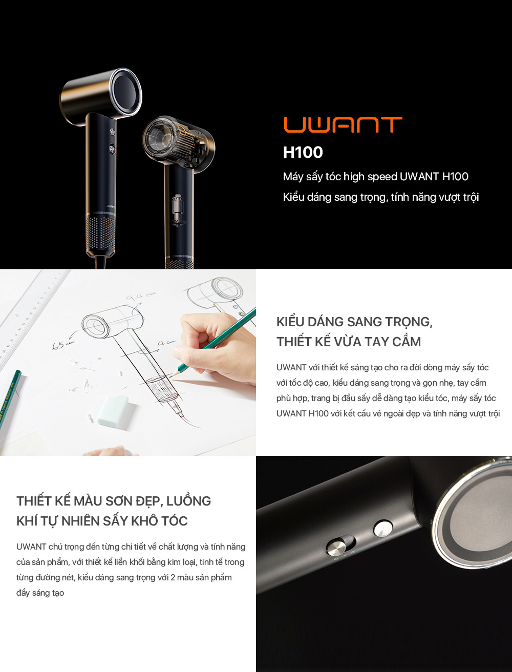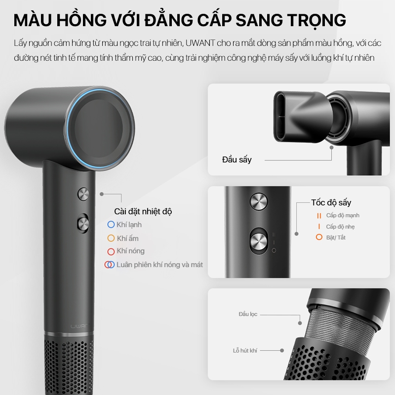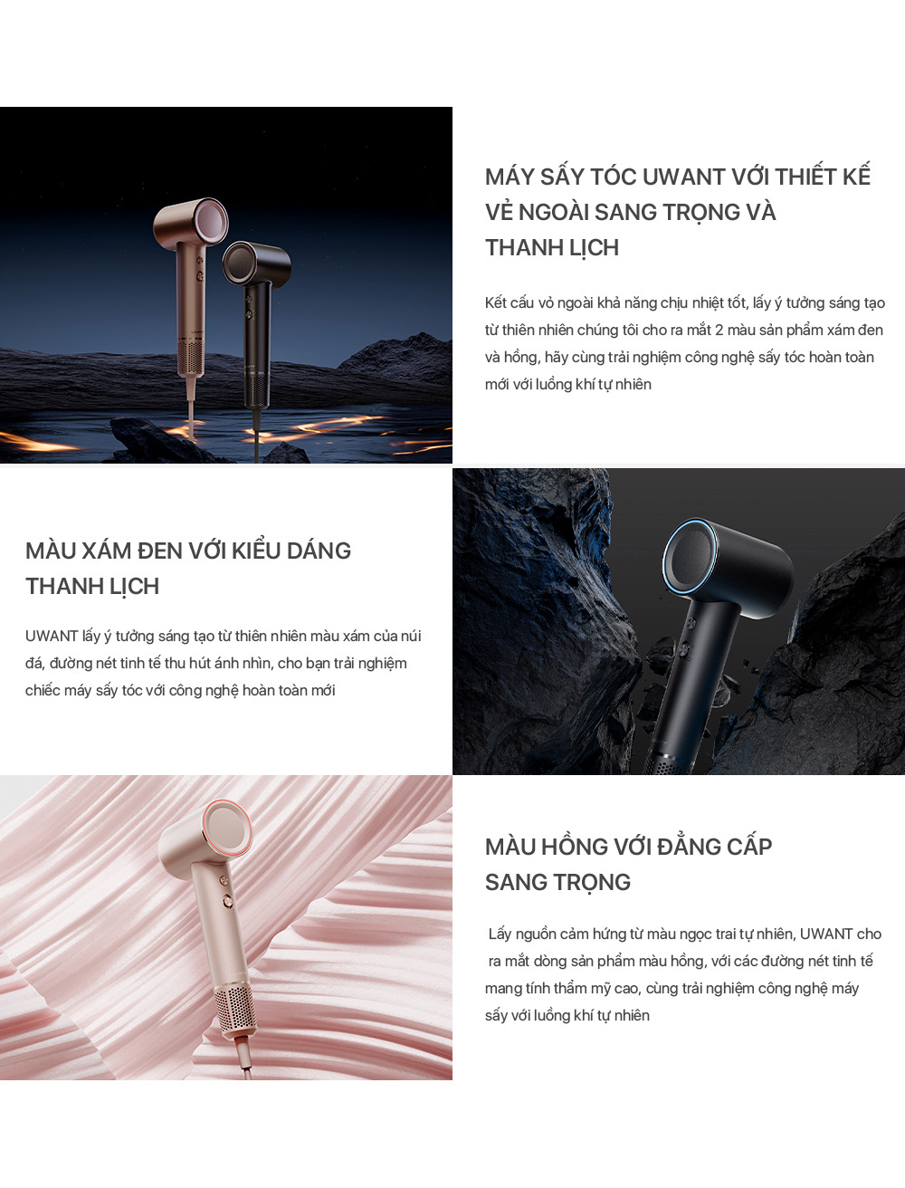 Máy sấy tóc UWANT với thiết kế vẻ ngoài sang trọng và thanh lịch