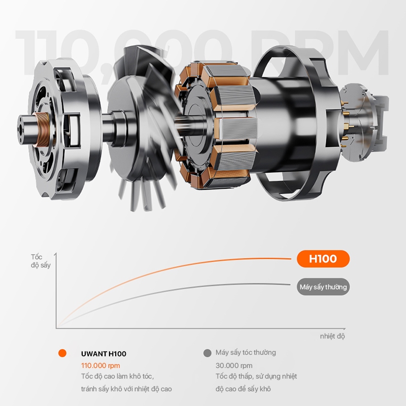 Tốc độ cao 110.000 / phút nhanh chóng sấy khô tóc