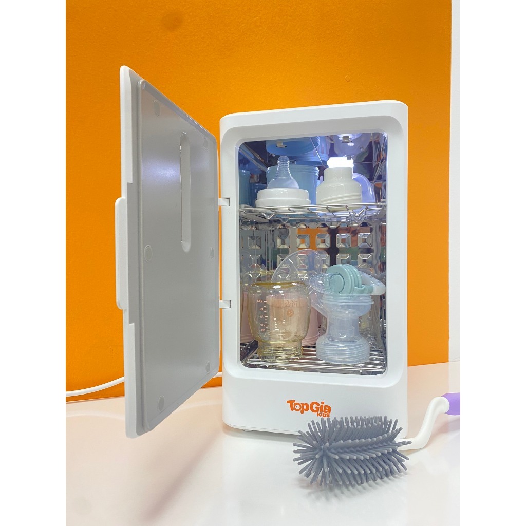 _ Máy tiệt trùng bình sữa tia UV TopGiaKids X18S là thiết bị hiện đại giúp bảo vệ sức khỏe bé yêu bằng cách loại bỏ vi khuẩn hiệu quả trên các vật dụng như bình sữa, núm ti, đồ chơi, thìa dĩa và các vật dụng nhỏ khác. Máy sử dụng công nghệ tia UV kết hợp sấy khô bằng khí nóng giúp tiệt trùng tối ưu và không để lại hơi ẩm, hạn chế vi khuẩn phát sinh trở lại.