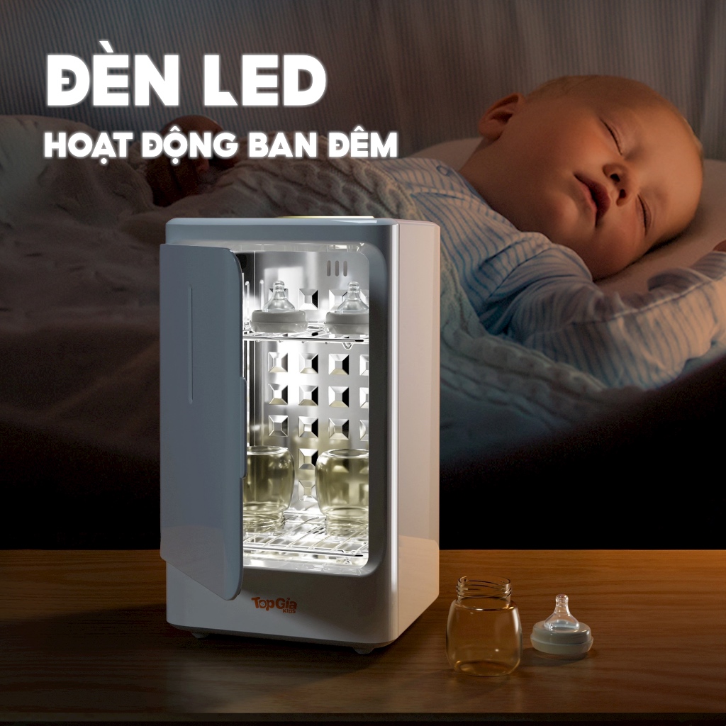 _ TopGiaKids X18S còn tích hợp tính năng tiệt trùng tự động theo chu kỳ, giúp tiết kiệm thời gian và công sức cho cha mẹ. Chế độ lưu trữ sau tiệt trùng giúp bình sữa và vật dụng luôn trong tình trạng vô trùng trong nhiều giờ liên tục.
