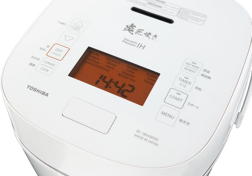 _ Bảng điều khiển cảm ứng cùng màn hình LCD rõ ràng, hỗ trợ nhiều chức năng như chọn chế độ “Ngon”, “Cứng”, “Dẻo”, “Nhanh”, chế độ nấu gạo trắng, gạo lứt, ngũ cốc, cháo, súp, bánh... phù hợp với nhiều nhu cầu nấu ăn đa dạng.