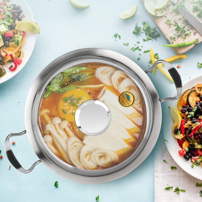 Nồi có nắp kính chịu nhiệt trong suốt, giúp người dùng dàng quan sát thực phẩm trong quá trình chế biến