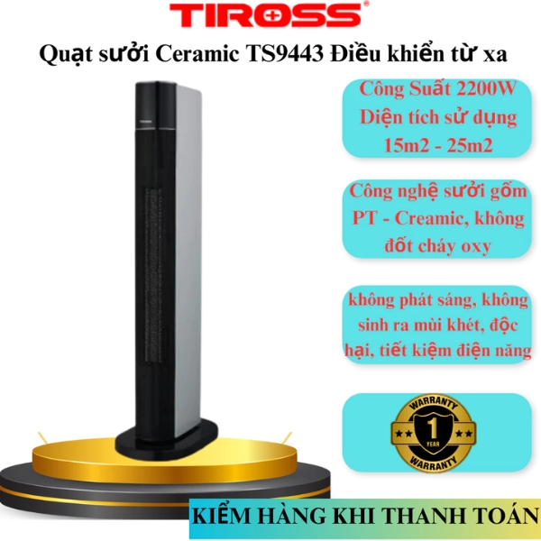 Sưởi Ceramic TIROSS TS9443 là lựa chọn lý tưởng cho những ai tìm kiếm một thiết bị sưởi ấm hiệu quả, an toàn, tiết kiệm năng lượng và có thiết kế tinh tế, phù hợp với mọi không gian sống hiện đại.
